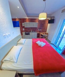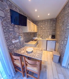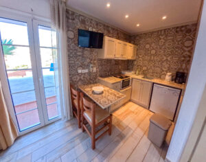 Calliope Studios and Apartments is a cozy studio apartment located in the beautiful village of Myrties, Kalymnos, offering stunning views of both the sea and the surrounding mountains. Designed for comfort and relaxation, the studio is ideal for couples or solo travelers looking to enjoy the natural beauty and peaceful atmosphere of the island. From your balcony, you can admire the deep blue of the Aegean Sea and the dramatic mountain landscape that makes Kalymnos so special. The studio is fully equipped for a comfortable stay and is within walking distance of the beach, traditional tavernas, cafรฉs, and local shops. Calliope Studios and Apartments is the perfect base for exploring Kalymnos while enjoying breathtaking views and a warm, welcoming environment.